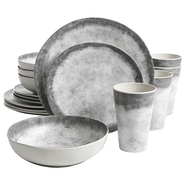 Gibson Home Granite 16 Piece Round Melamine Plate, Bowl, & Cup